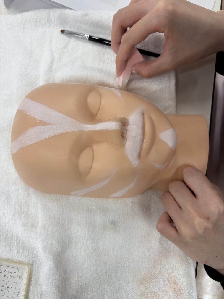 作るポイントを解説してもらい、先ずはマスクで練習🖌