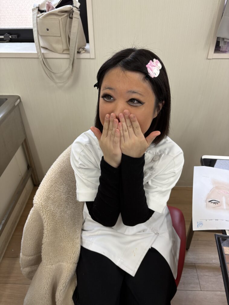 1年生のメイク実習にて・・・🤣🤣🤣