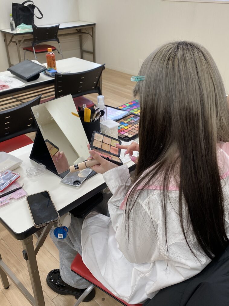 学校の教材もうまく組み合わせてメイクを仕上げていきます👍