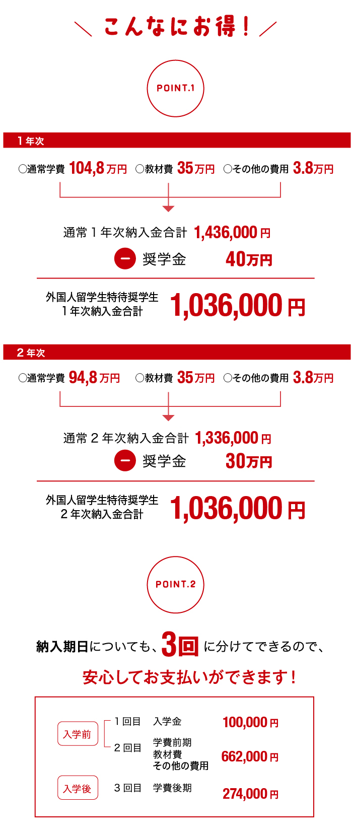 留学生には「外国人留学生特待奨学生」として奨学金を支給します。」