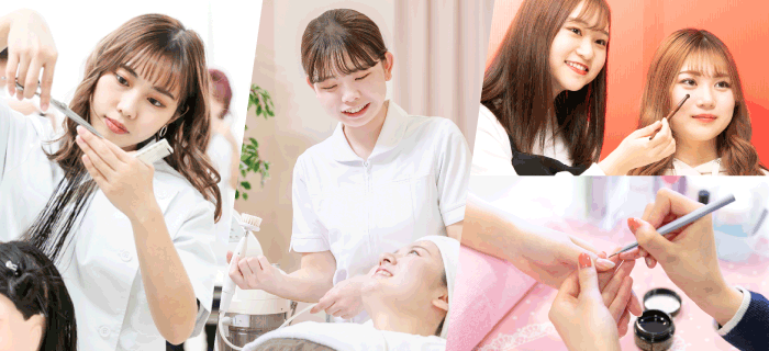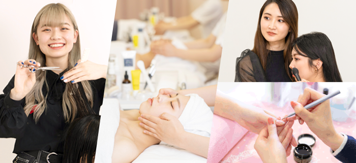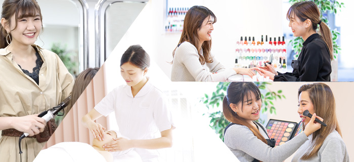 美容師を育てるビューティースタイリスト科と、エステ・ネイル・メイクのプロを育てるトータルビューティー科。