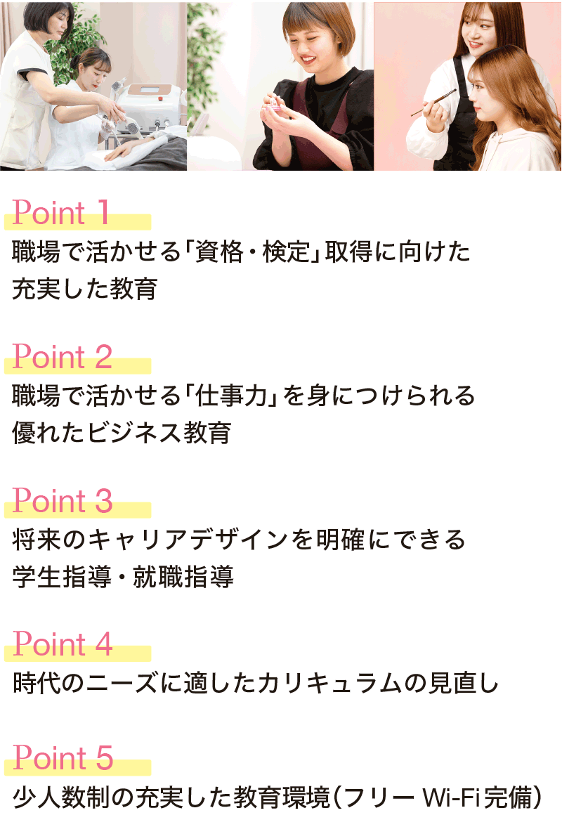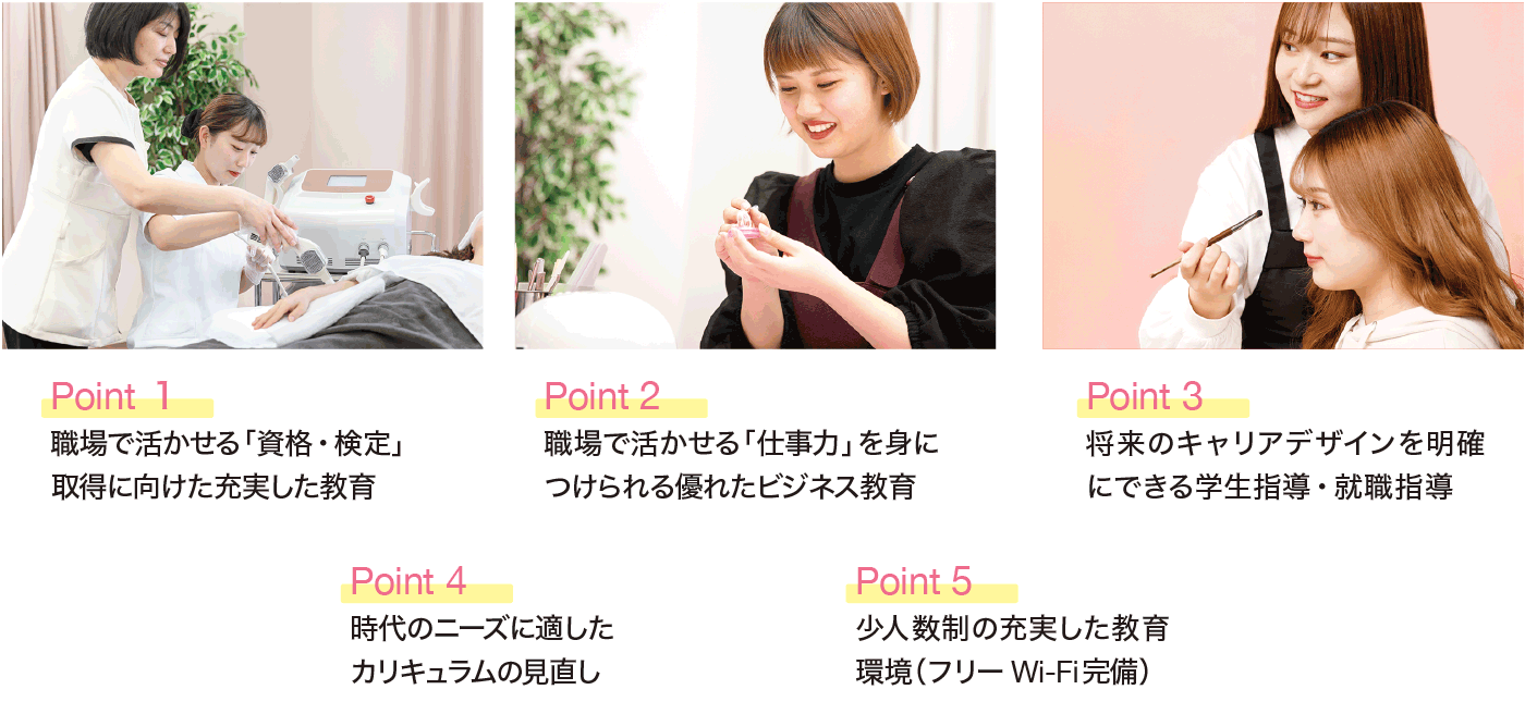 - シデスコサロンと産学連携授業によるサロン体験および、学生サロンを通しての実践的な技術により業界トップクラスのエステティシャンを目指します。
